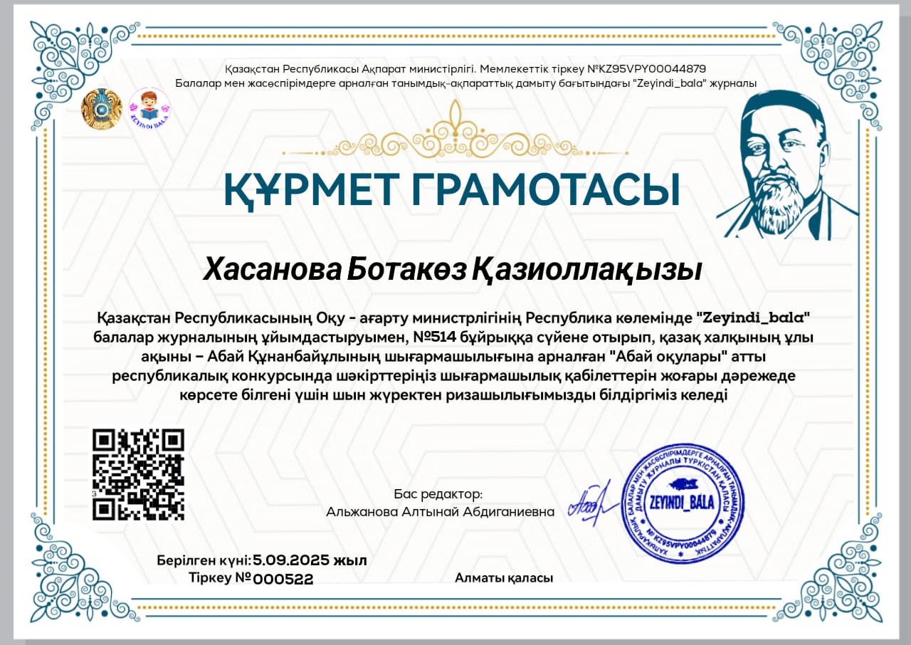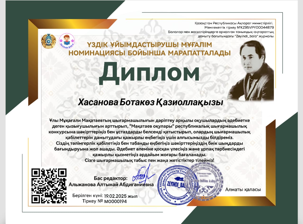 Хасанова Ботакөз Қазиоллақызы